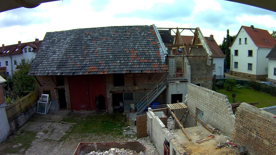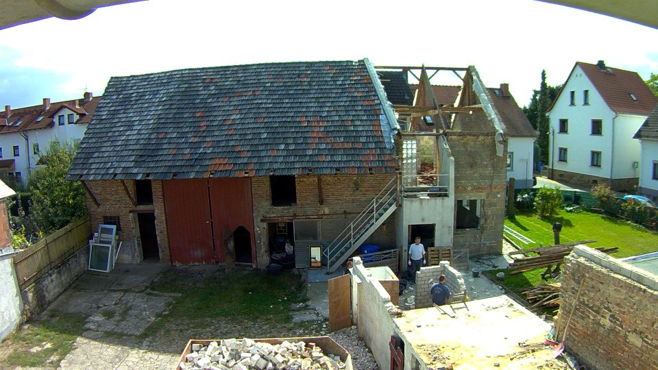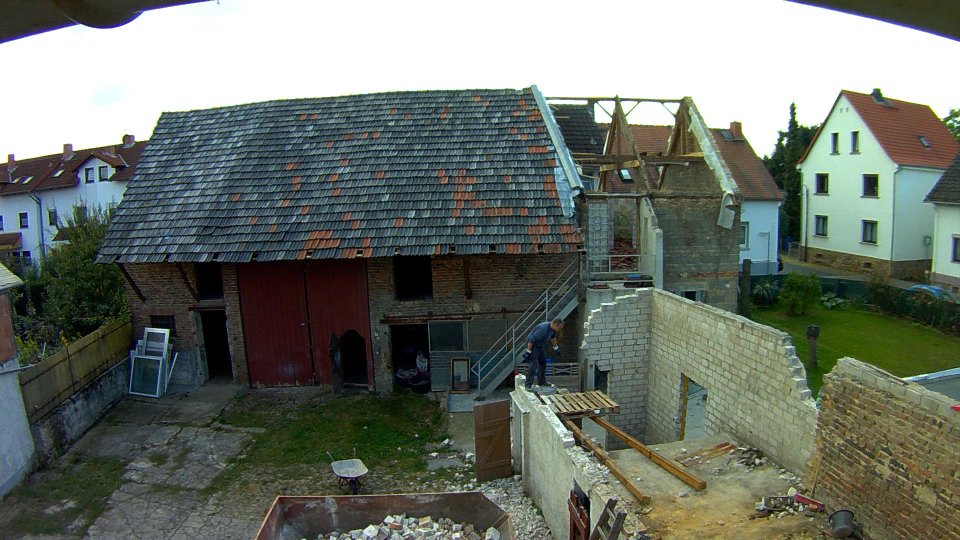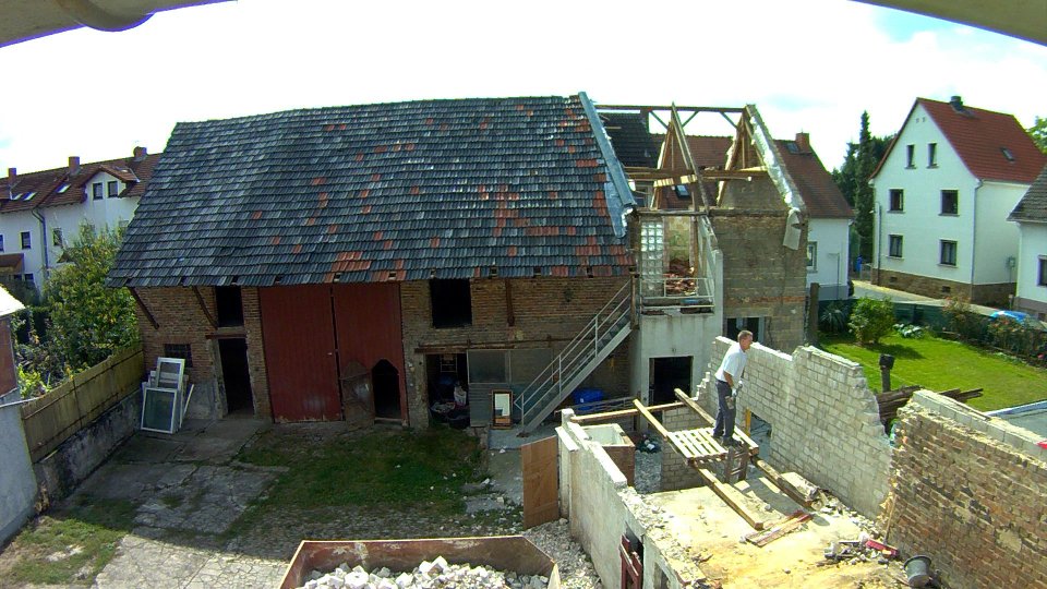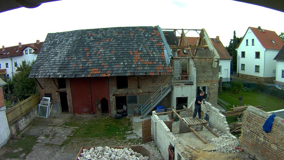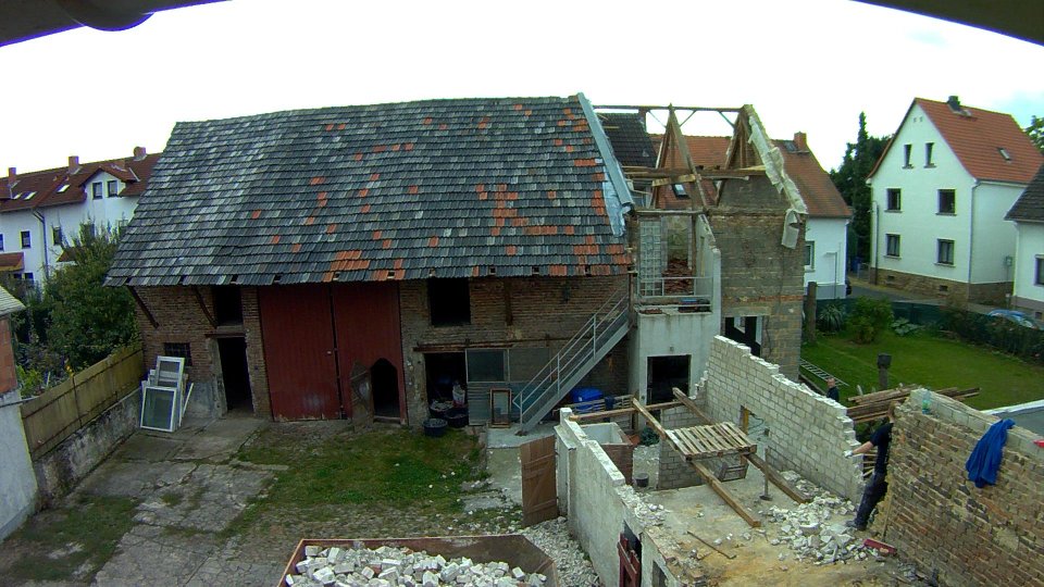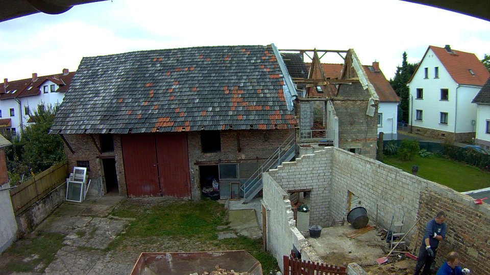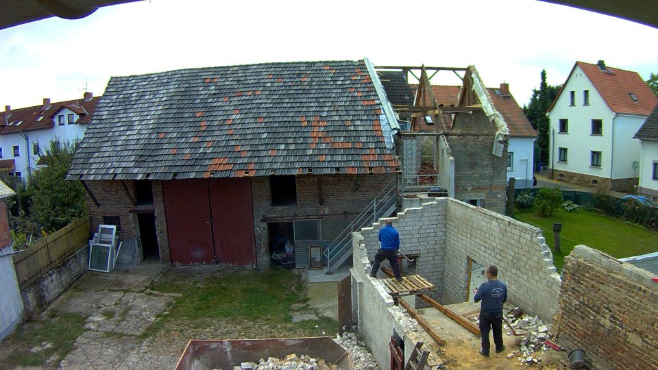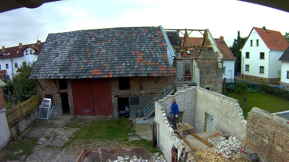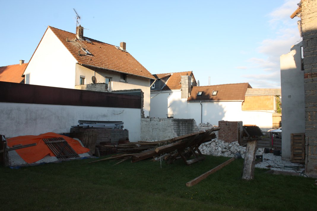 Wir haben heute mit dem Abriss des Nebengebäudes begonnen.