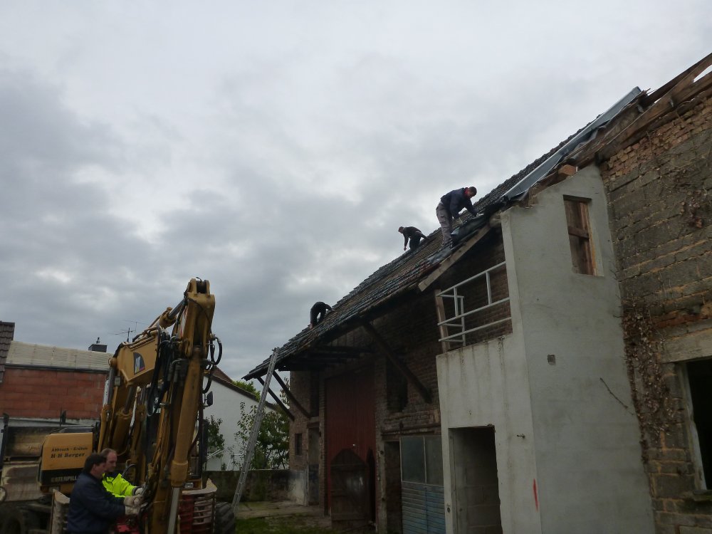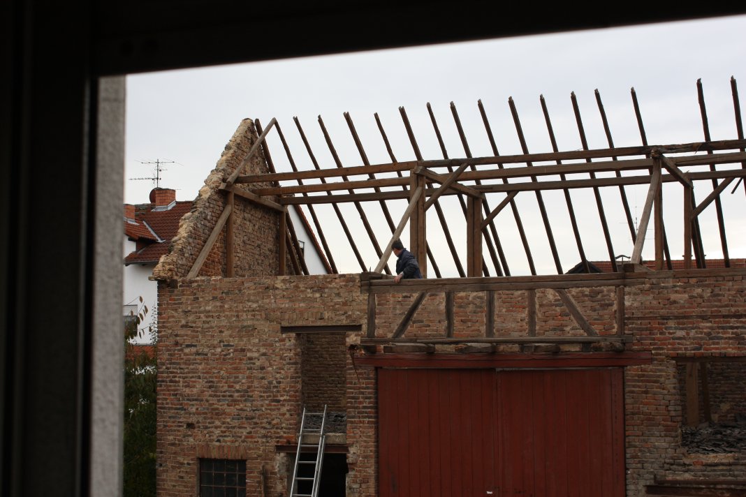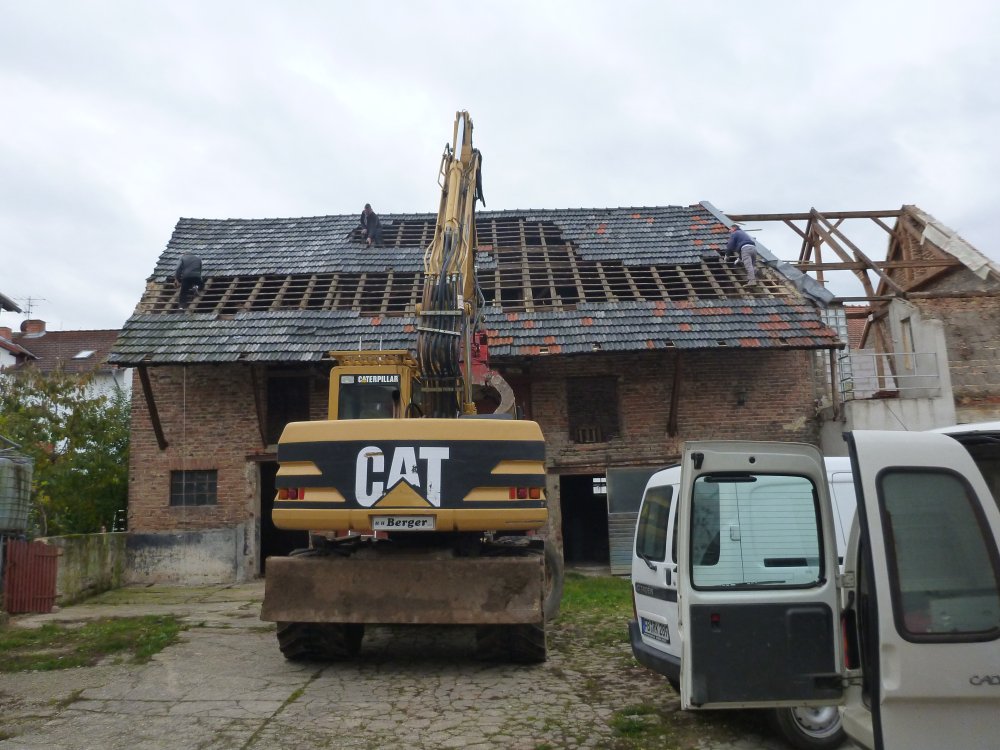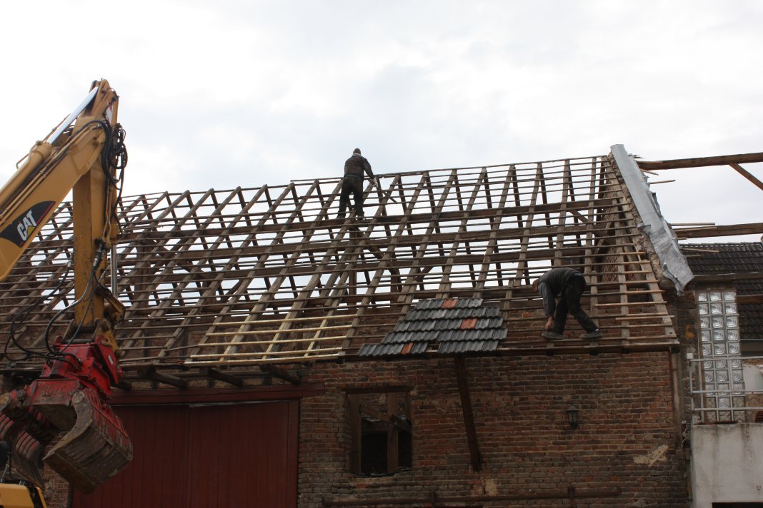 Heute ging es los: Die Firma Berger hat zunächst das Scheunendach mit drei Mann abgedeckt.