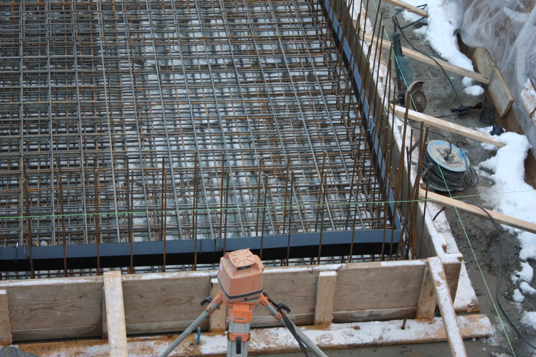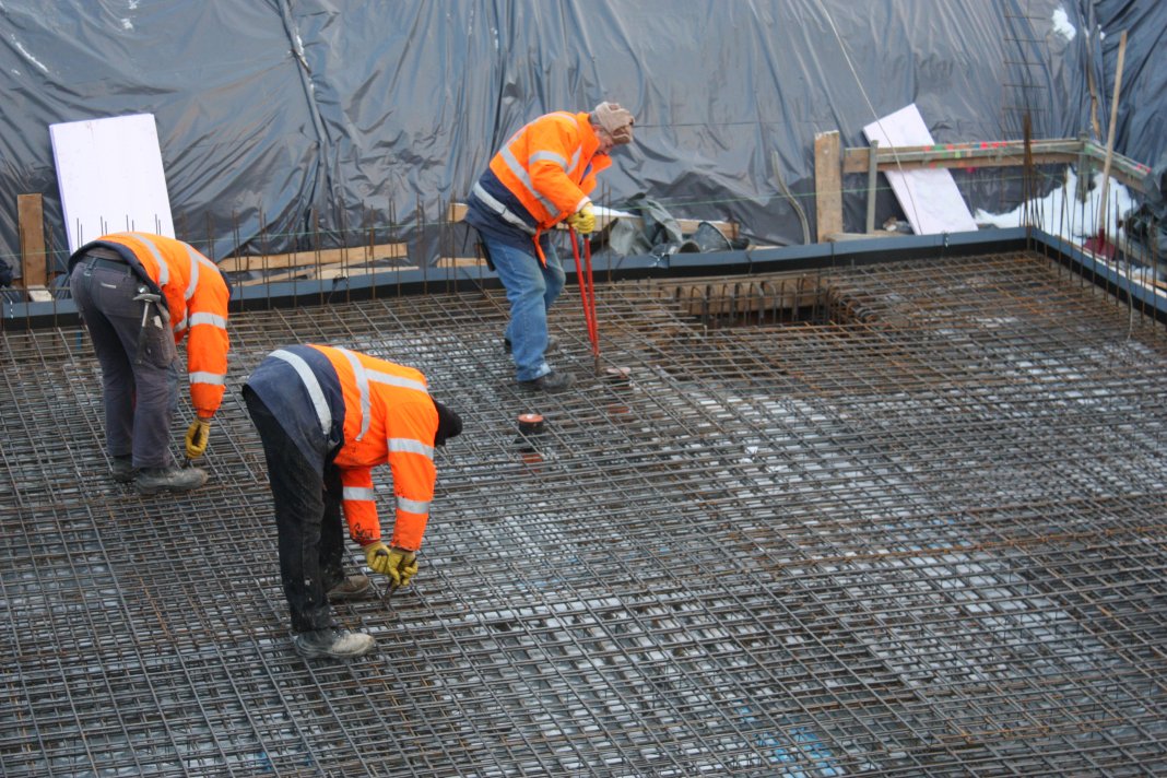 Auf den Bildern kann man sehr gut die Armierung der Grube für die Hebeanlage sehen, ebenso die senkrecht nach oben ragenden Armierungen.