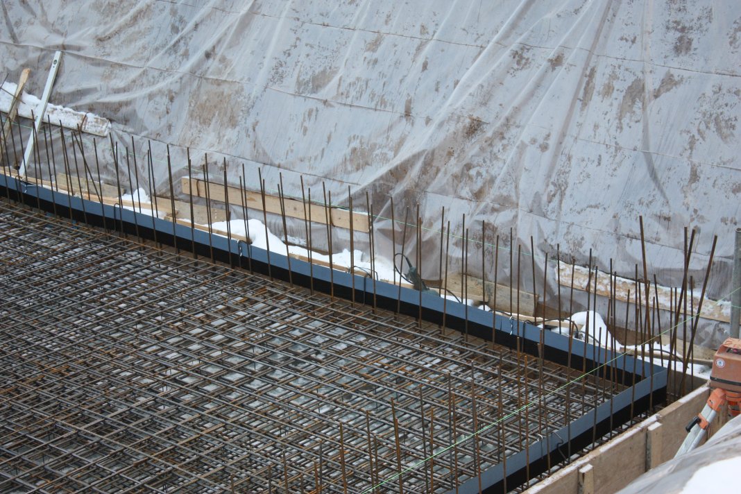 Auch wenn der Beton zwischen Bodenplatte und Wänden keinen Spalt aufweisen wird, haben die Bauarbeiter sicherheitshalber eine Gummidichtung eingebaut, die sicherstellt, dass kein Wasser durch die Verbindungsnaht kommen kann.