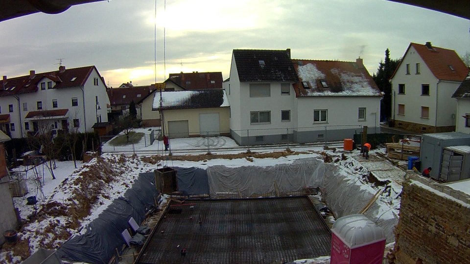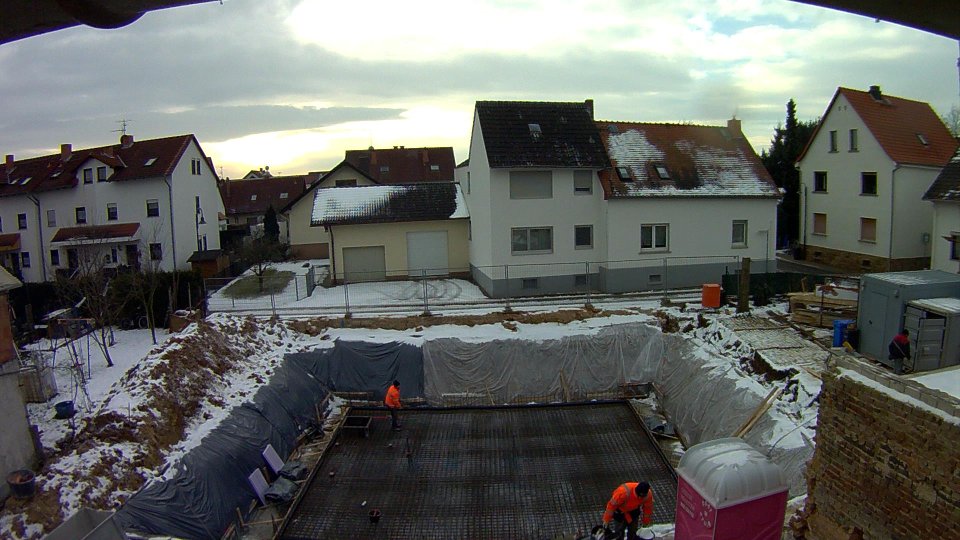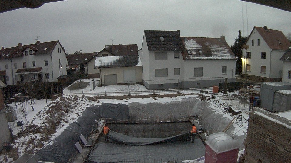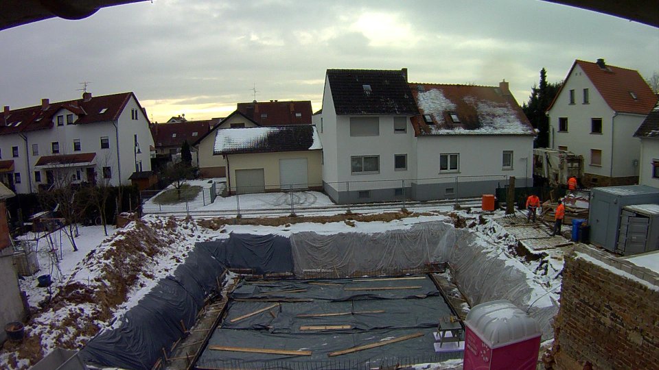 Somit können wir betonieren, sobald der letzte Schnee in der Grube weg ist. Voraussichtlich wird das erst gegen Ende der Woche sein.