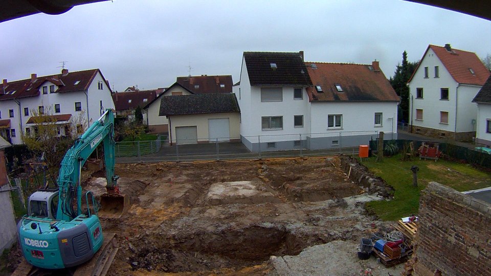 Der Bagger ist angerollt und hat schon mal die Überbleibsel an Schutt beseitigt und die Fläche eingeebnet.