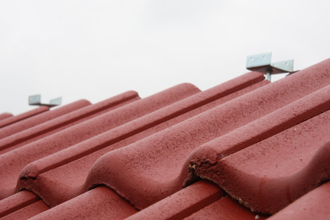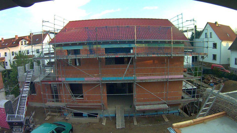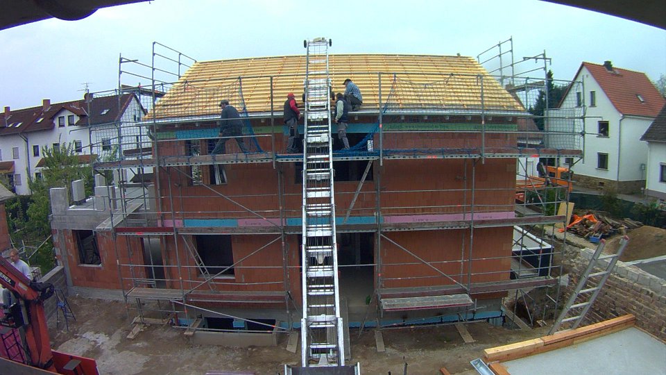 Das Dach kann sich sehen lassen !!!! Die Anschlusshaken für die Solaranlage sind ebenfalls schon montiert und an den Ziegeln ausgespart.