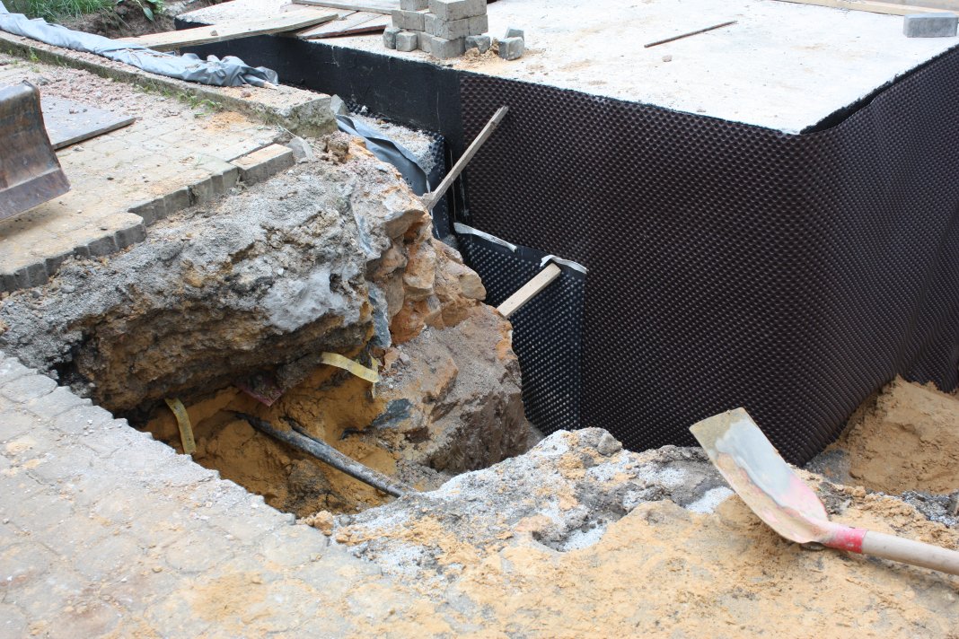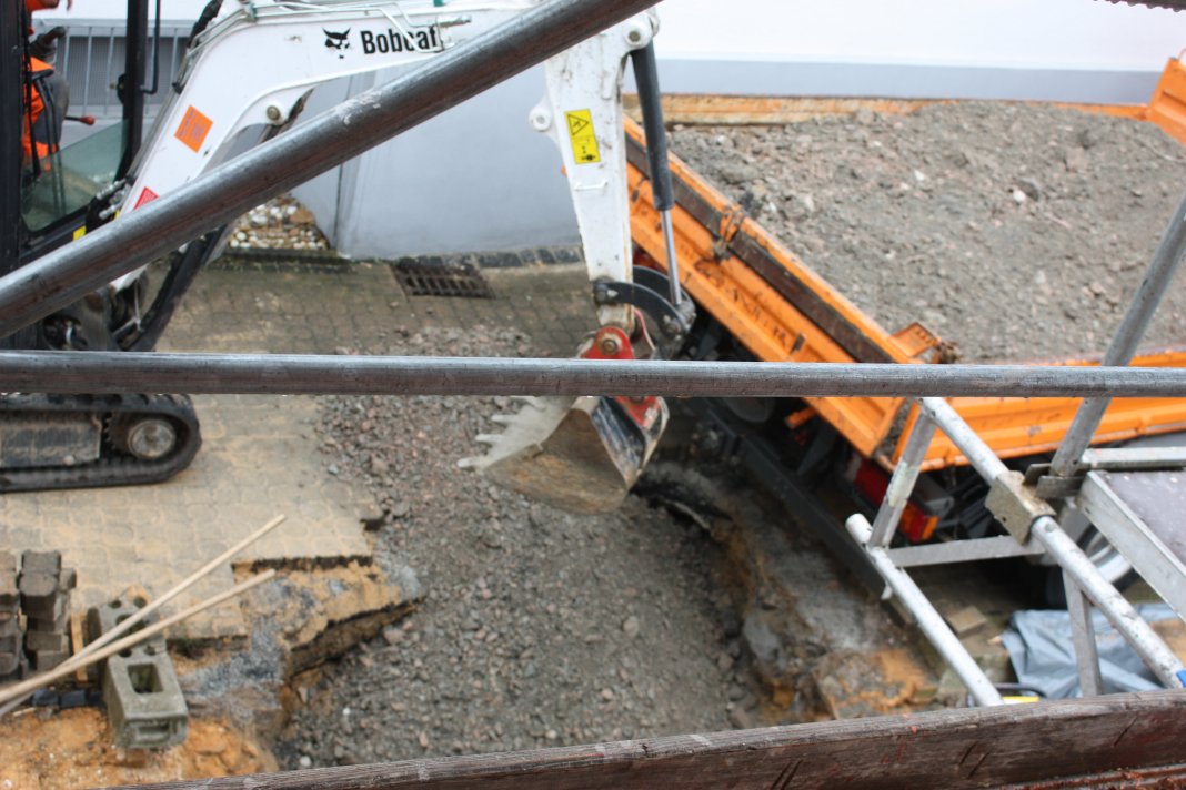 Zeitgleich wurden von der Firma Papst der Kanalanschluss hergestellt und verfüllt. Zum Schluss wurde das Pflaster wieder hergestellt und die Randsteine betoniert.