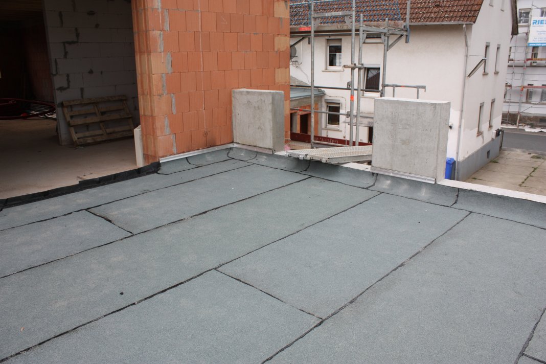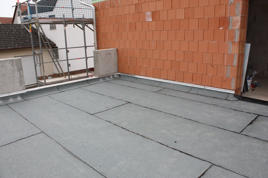 Heute wurde die Gefälledämmung auf die Terrasse und den Balkon aufgebracht.