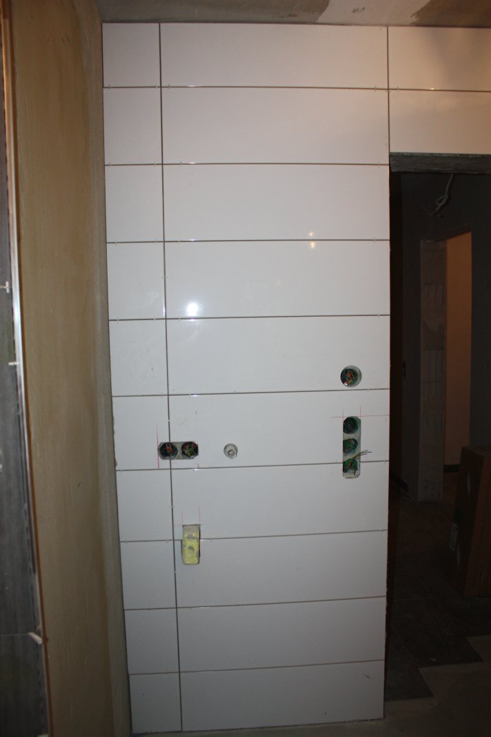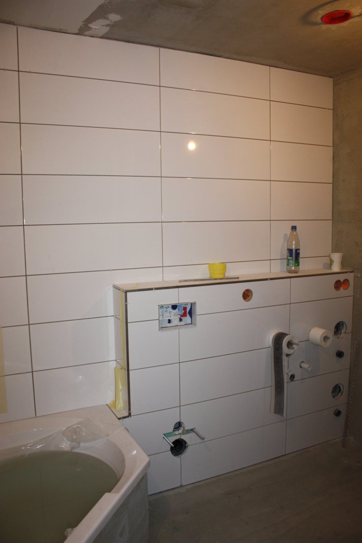 Wir hatten leider nicht genug Fliesen gekauft (bzw. so viel Verschnitt gehabt), so dass wir jetzt warten müssen, bis die Nachlieferung eingetroffen ist.