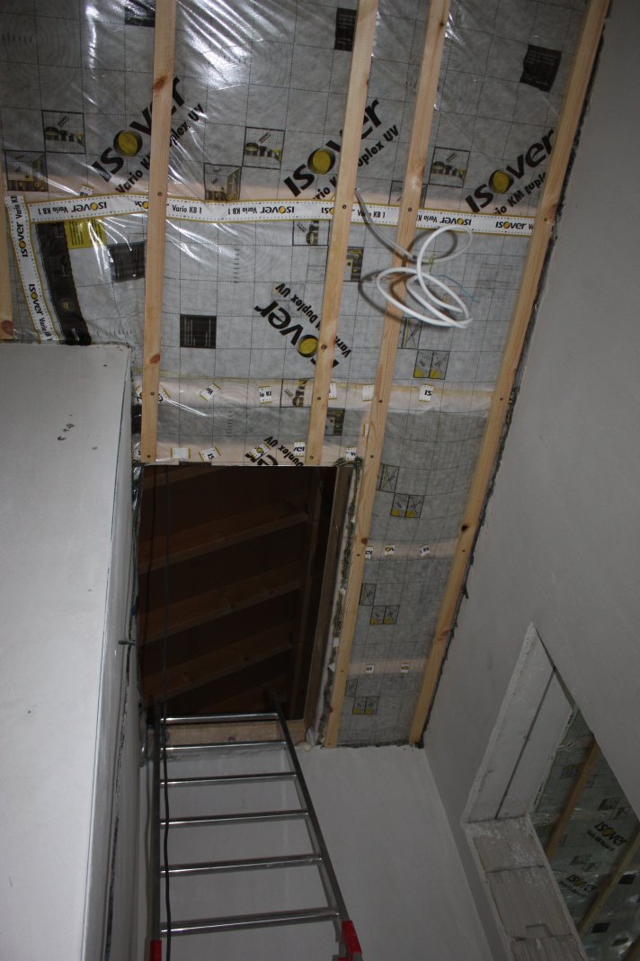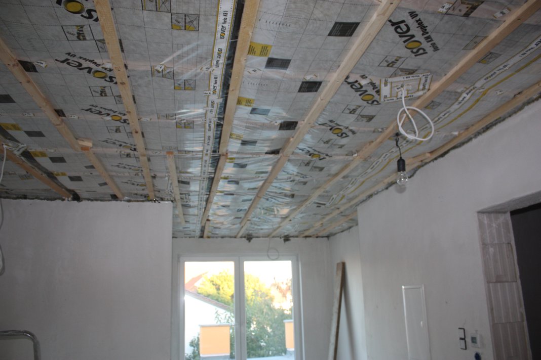 Die übliche Sonntagsarbeit, nachdem Setzten der Fensterbänke haben wir uns wieder voll und ganz der Decke im OG gewidmet.