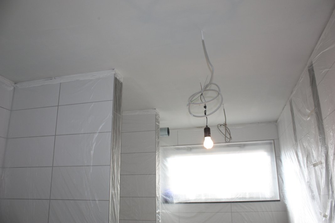 Nach dem zweiten Anstrich machten die Bäder eine gute Figur, daher ist das EG an der Reihe. Hier verwenden wir das Hornbach- Polarweiß.
