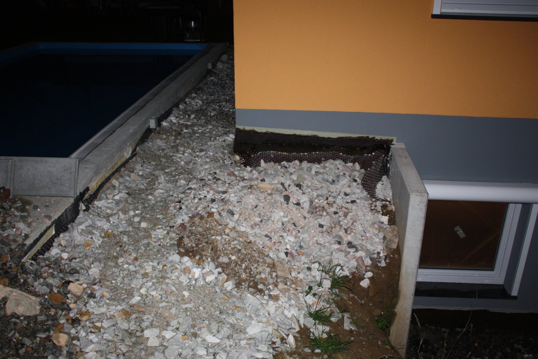 Aber da gutes Wetter ist, habe ich noch die Grundierung für das Bitumen rund ums Haus angebracht.