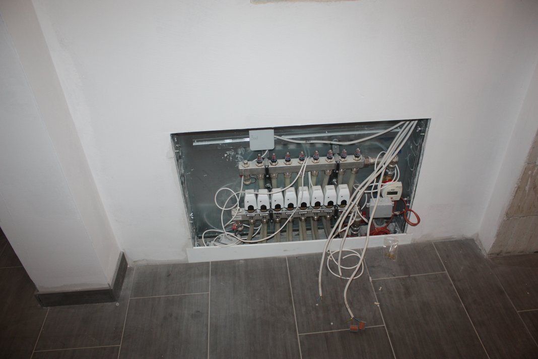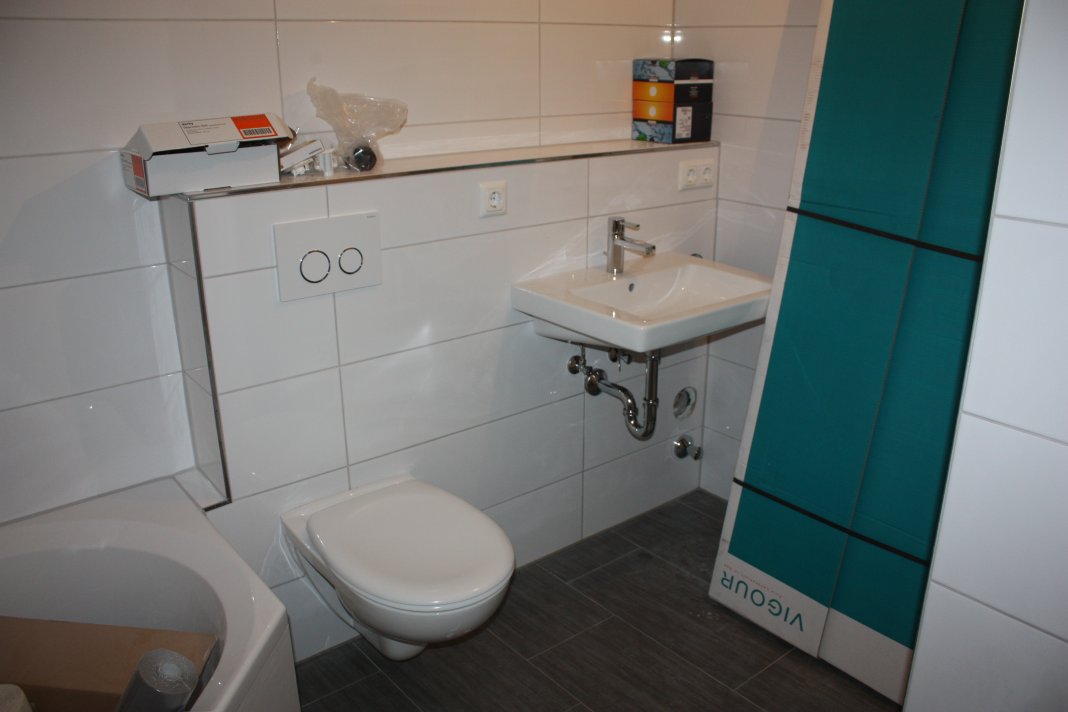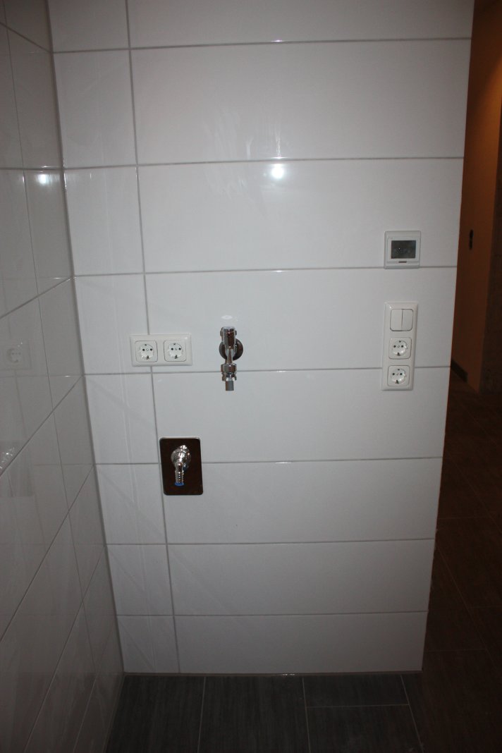 Nun sind auch die Armaturen im EG und KG in den Bädern montiert, inklusive der Glastür für die Dusche.