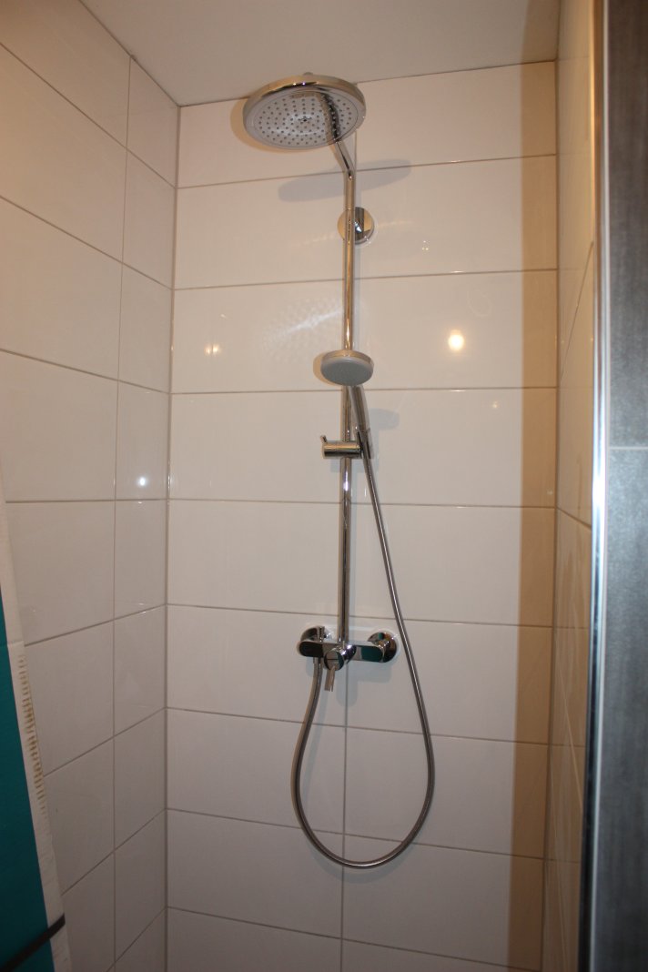 Leider kommt die Duschtür für das OG erst im Dezember, also gab es vorübergehend erst mal einen Vorhang.