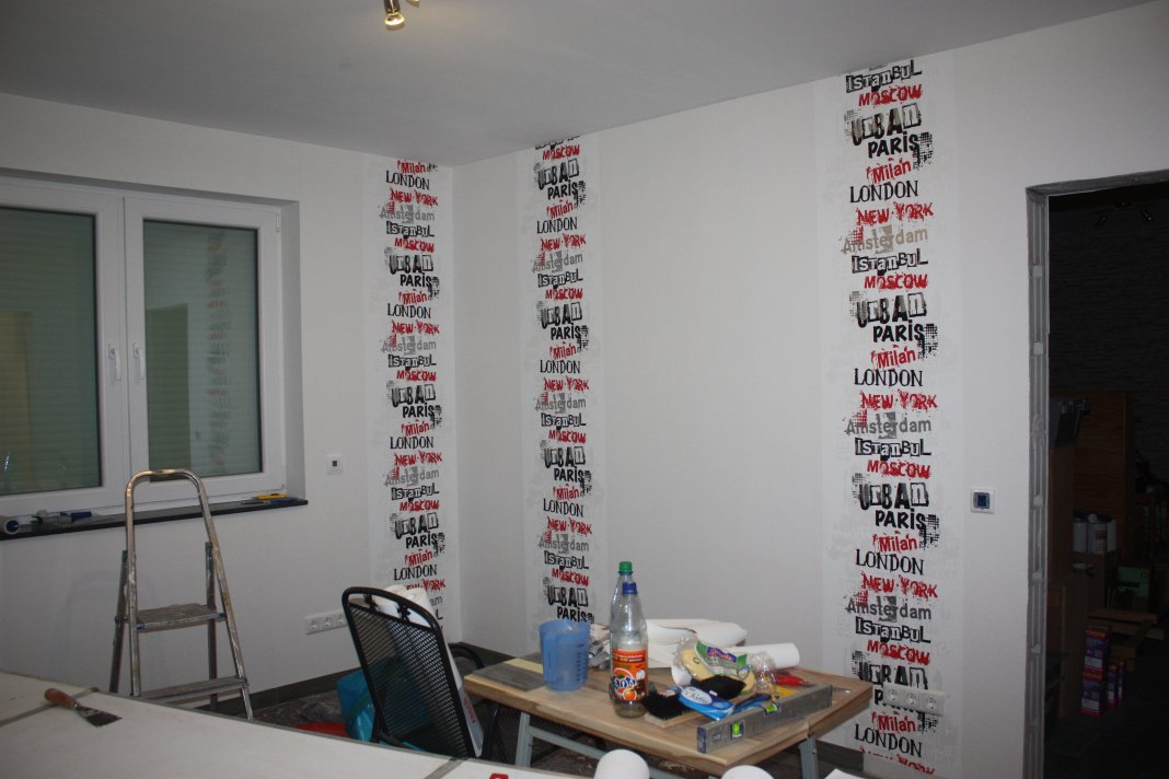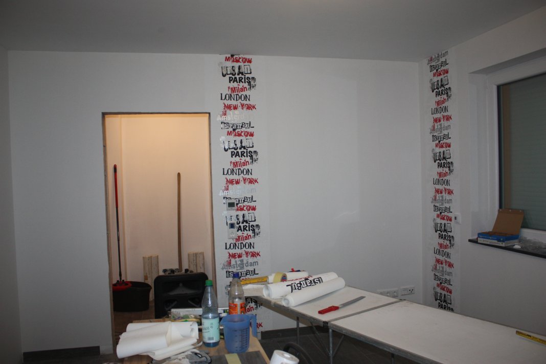 Wir haben das Tapezieren des Büros fertiggestellt.