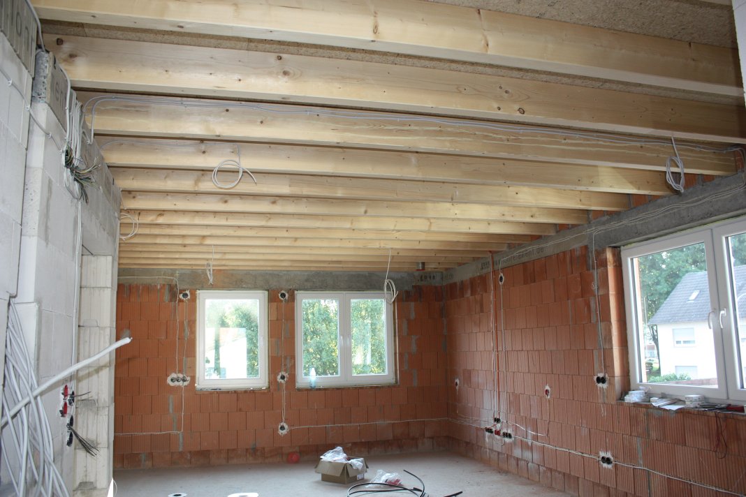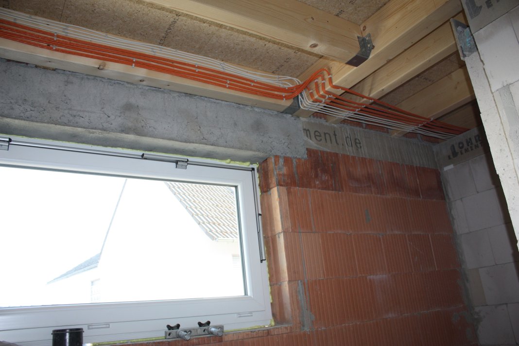 Auch hier haben Ela und Ernst heute noch einen großen Teil der Sensorleitungen für die Fenster und Türen im Erdgeschoss verlegt.