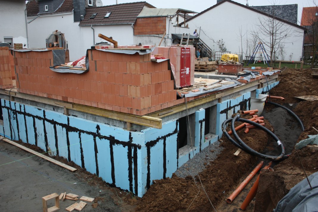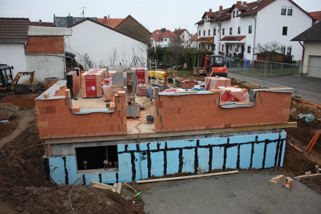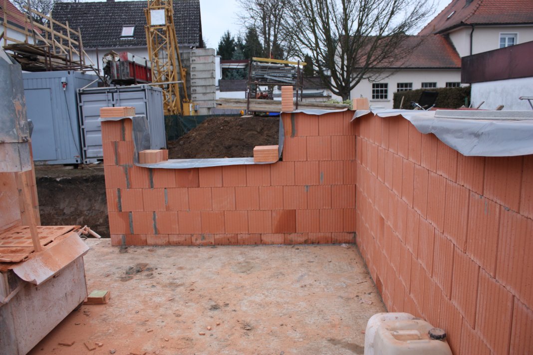 Die Gartenseite ist auch auf die Höhe von 5 Vollsteinen gemauert worden.