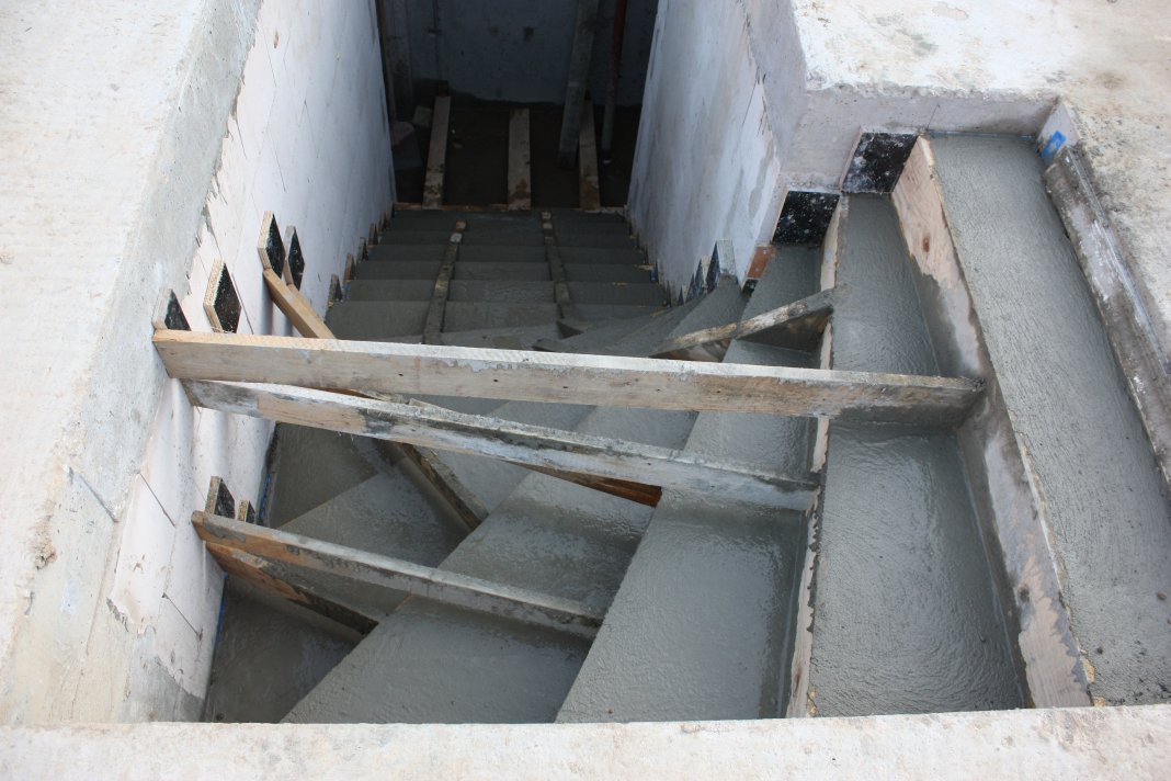 Heute wurde unsere Kellertreppe betoniert, das verändert sofort wieder die Wirkung der Baustelle, bald können wir die Treppe benutzen.