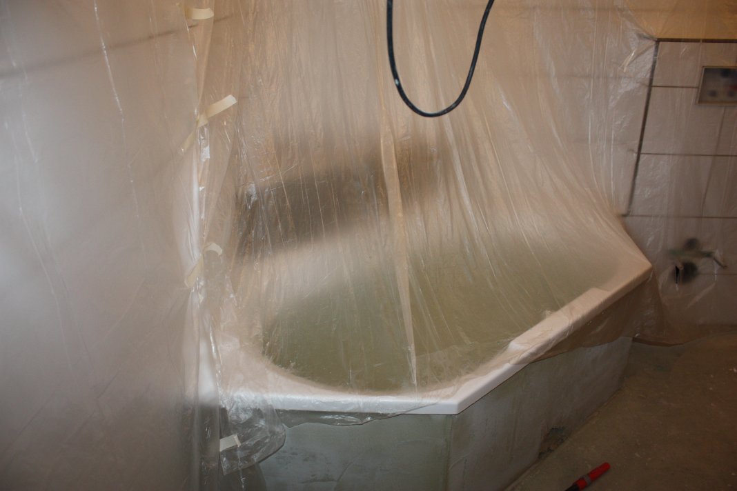Heute haben wir den Erstanstrich in den Bädern gemacht, trotz teurer Farbe deckte es nicht beim ersten Mal.