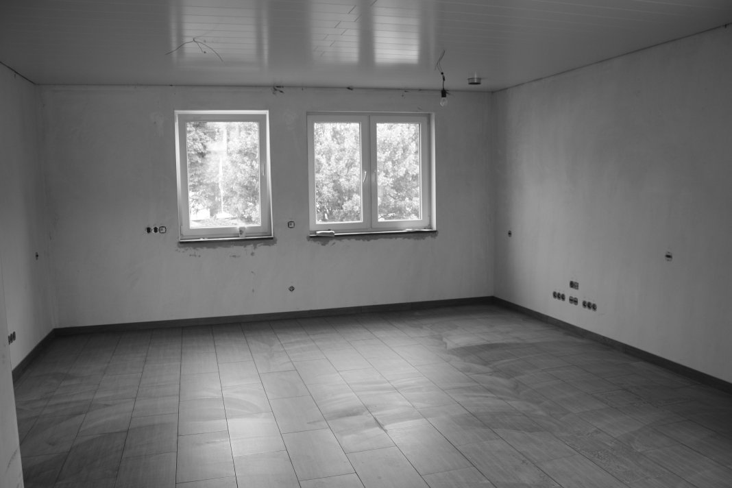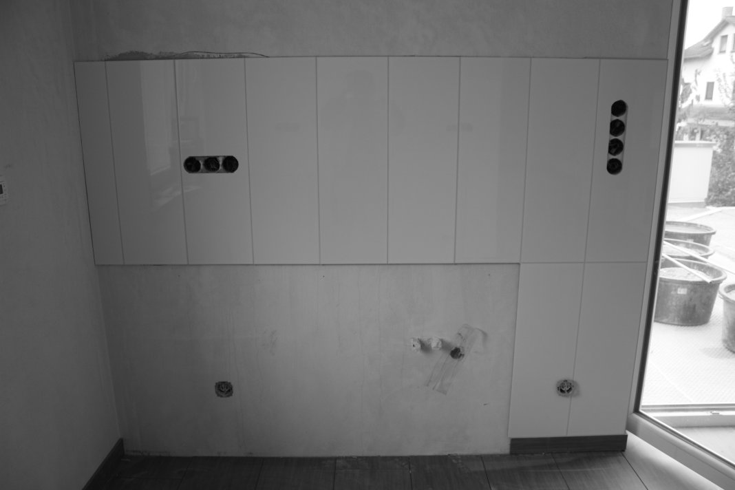 Wir haben das Bad verfugt, sowie den Fliesenspiegel, die Sockelfliesen im Wohnzimmer und den Flur bis ins Bad verlegt .