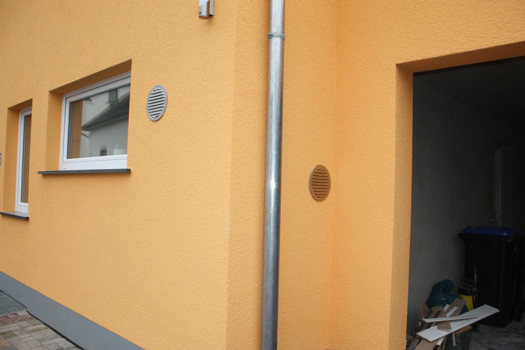 Von außen sind die letzten Löcher verblendet, die Lüftungsgitter mit Fliegengitter sind montiert worden.