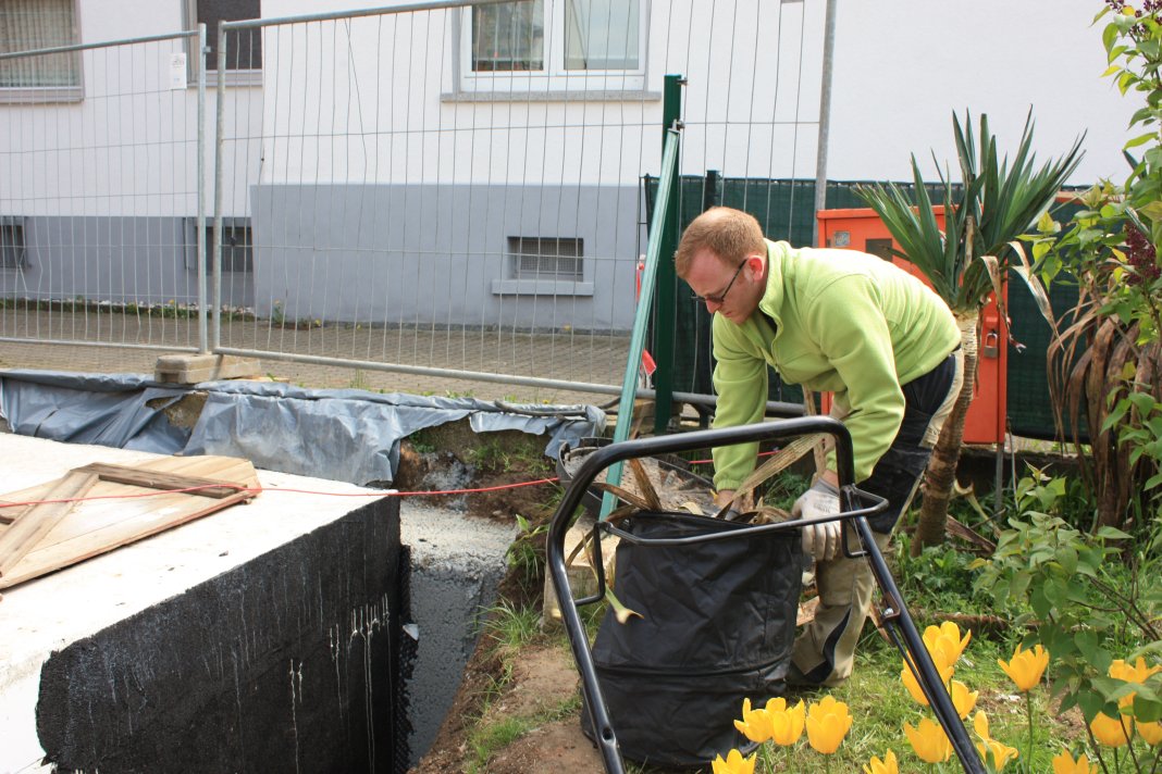 Nach dem rituellen Kapersburg- Besuch am 1. Maimorgen, haben wir, da die Baucontainer weg sind, die Gunst der Stunde genutzt, um das Laub und Unkraut unter den Rosen zusammenzurechen.