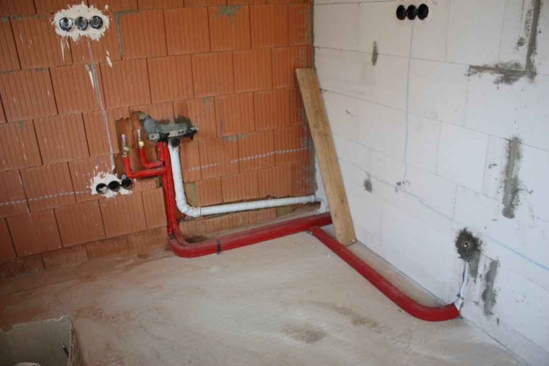 Auch die Küchenanschlüsse im EG wurden hergestellt und der Abfluss im Keller.