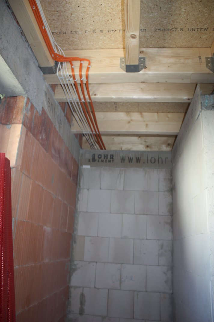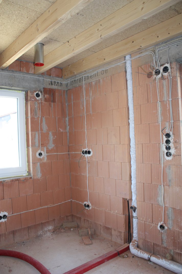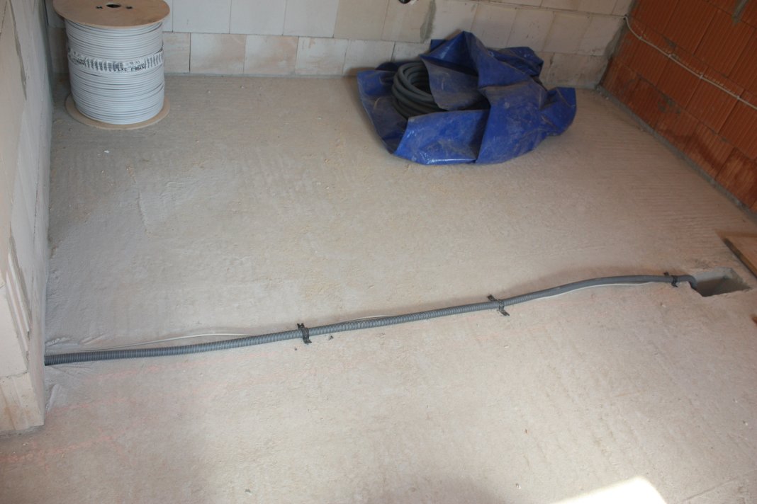 Das Obergeschoss ist fast fertig verkabelt, sogar ein Großteil der Sat- und Netzwerkkabel ist bereits verlegt.