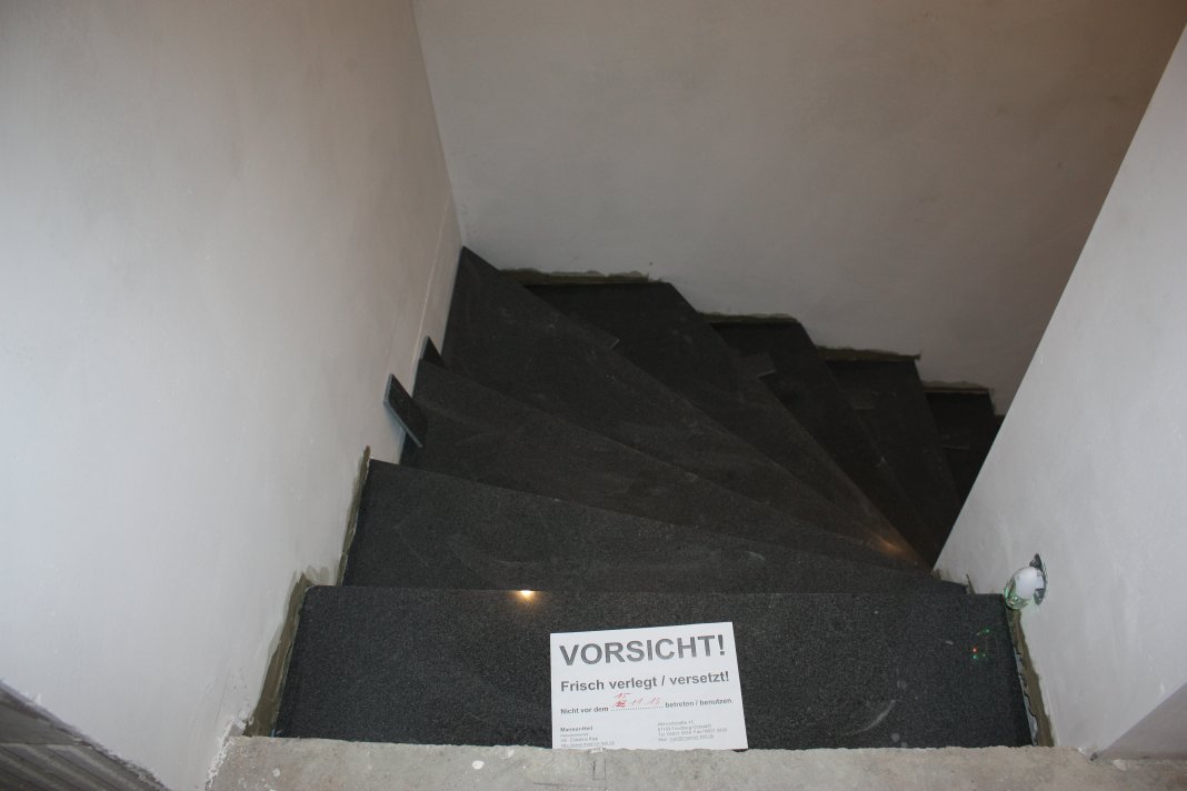 Die Treppe ins OG ist fertig, inklusive Wischleiste, jetzt muss noch Silikon drauf, aber das erfolgt, wenn die Innentüren drin sind.