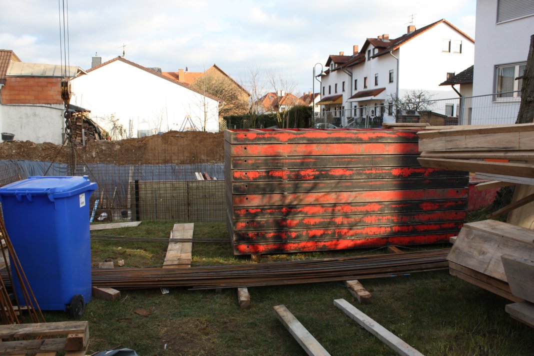 Jetzt ist der halbe Keller einseitig verschalt, das Wetter sieht nach ziemlich kalt für nächste Woche aus, mal sehen ob da betoniert wird.