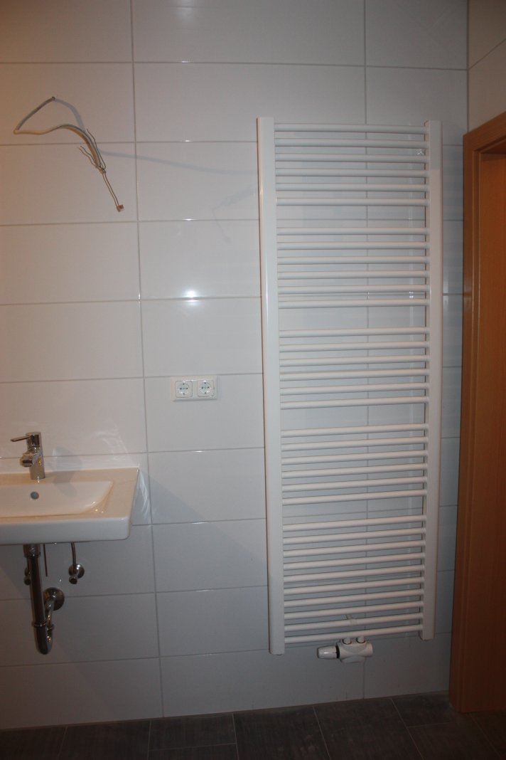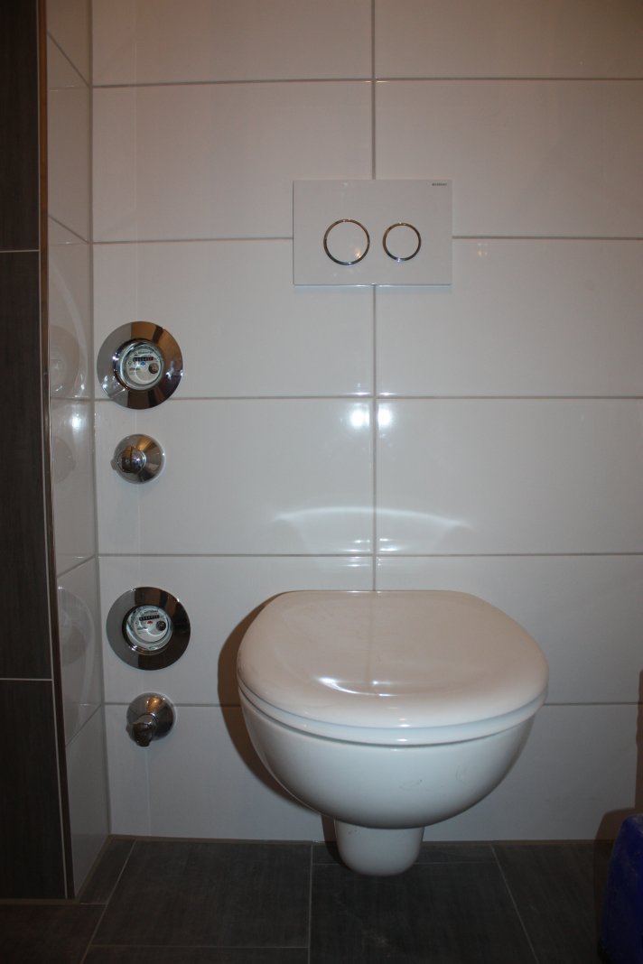 Heute hat der Schmalz die Installationen für das OG abgeschlossen, die Duscharmaturen, das Waschbecken, die Handtuchheizung und auch der Außenwasserhahn sind montiert.