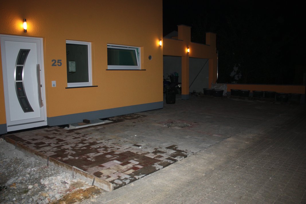 Pflastern Tag 5 Jojo Posted on 25/09/2013 Veröffentlicht in Außenanlagen No Comments Heute hat Ela das Acryl um die Kellerrolläden gestrichen. Anschließend haben wir bis vor die Haustür gepflastert.
