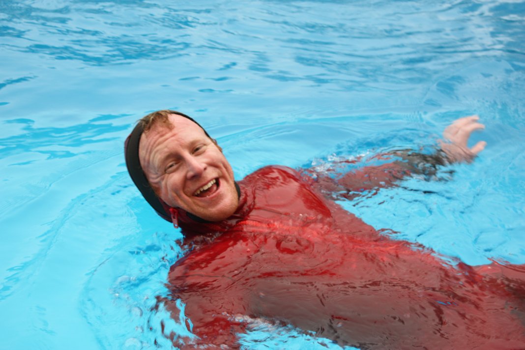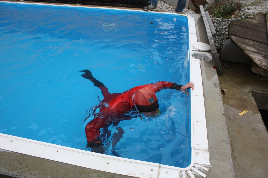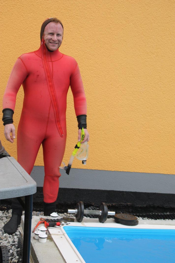 AUAAAAA, kaltes Wasser kann vielleicht stechen – vor allem im Gesicht und an den Händen. Da ich keinen Bleigürtel hatte, habe ich meine Hantel verwendet, um untertauchen zu können.