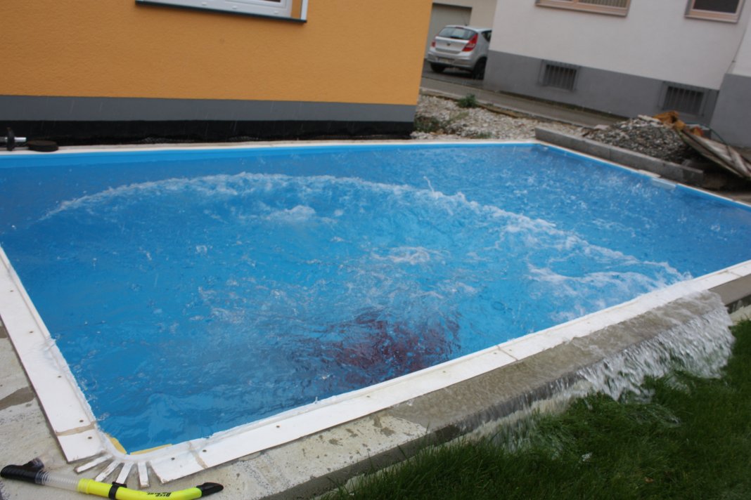 Heute steht der Pool auf der To-Do-Liste, der soll winterfest werden.