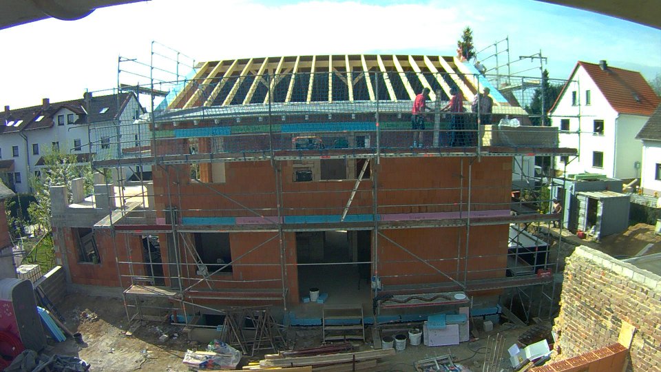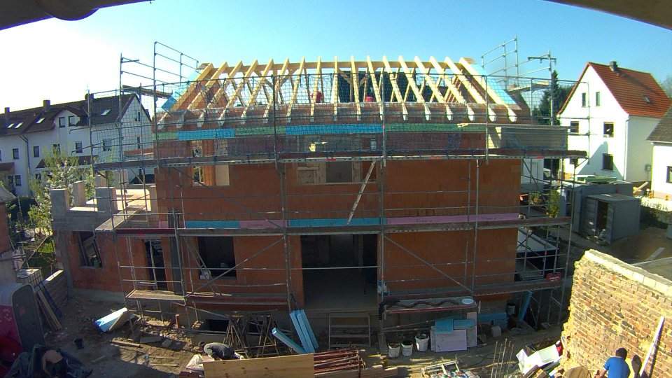 Rinn XI hat heute die DWD Platten aufs Dach genagelt, es war der perfekte Zeitpunkt, denn kaum war das Dach geschlossen, fing es auch schon zu regnen an.