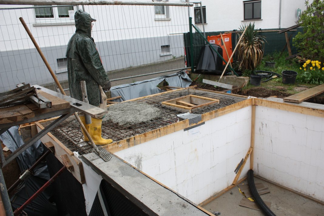 Neben dem Pool wurde mit Schotter verfüllt und die Decke des Pooltechnikraums betoniert.