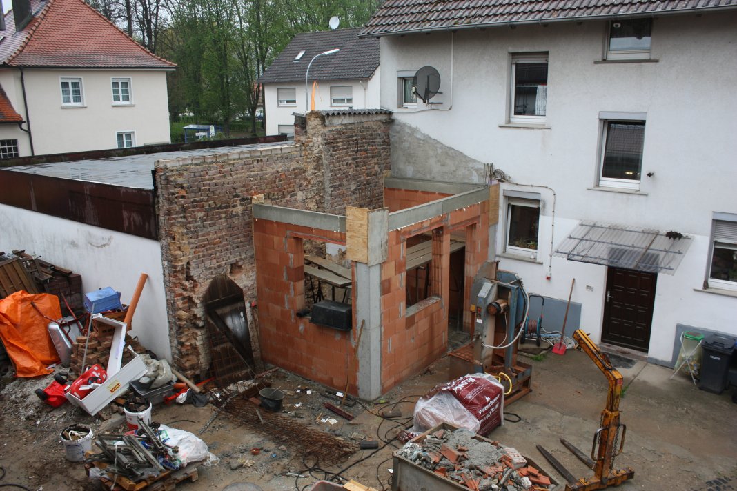 Das Nebengebäude wurde fertig gemauert und der Ringanker betoniert. Alles nach Zeitplan.