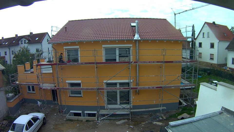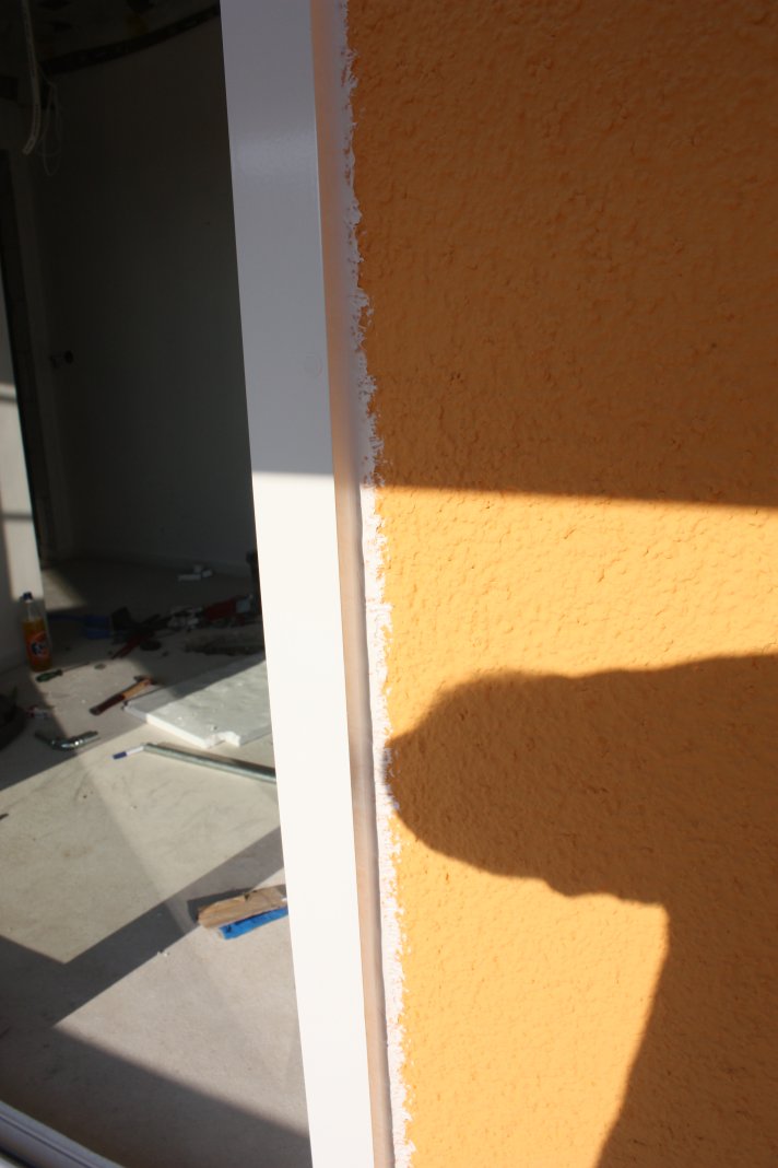 Ela war heute schwer am Start. Solange das Gerüst noch steht, hat sie im OG um alle Rollädenkästen eine Acrylnaht gezogen.