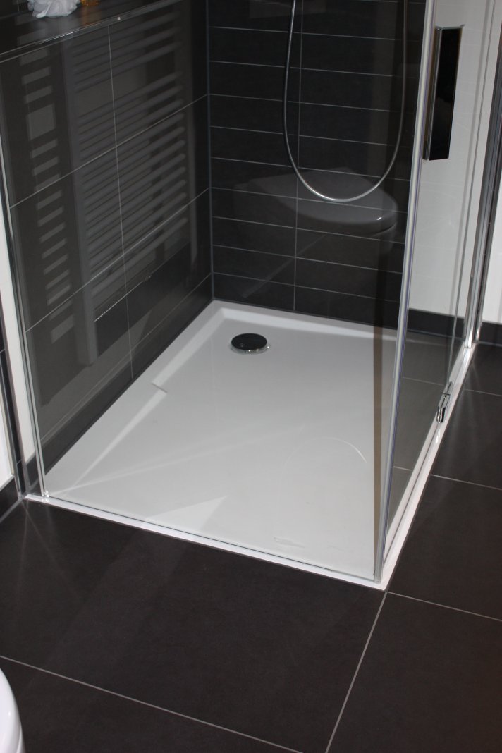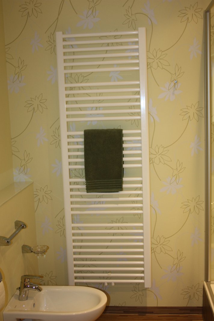 Die Duschwanne mit 6cm Tiefe haben wir für alle Bäder auf ultraflache 3cm umgestellt, ebenso den Handtuchheizkörper auf die leichter zu putzende Variante.