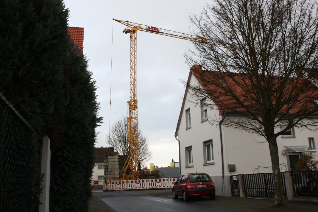 Heute ist der Kran vollständig aufgebaut worden- mit 30m Ausleger.