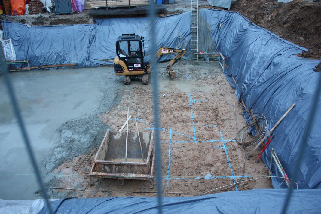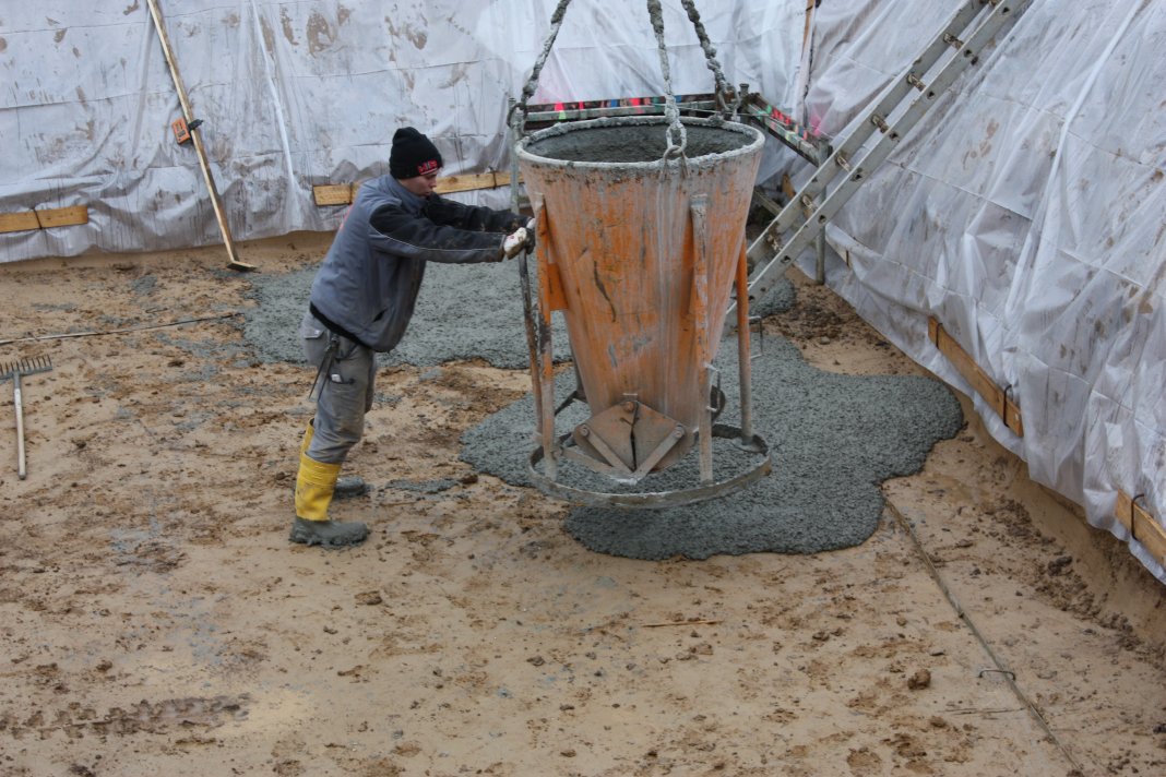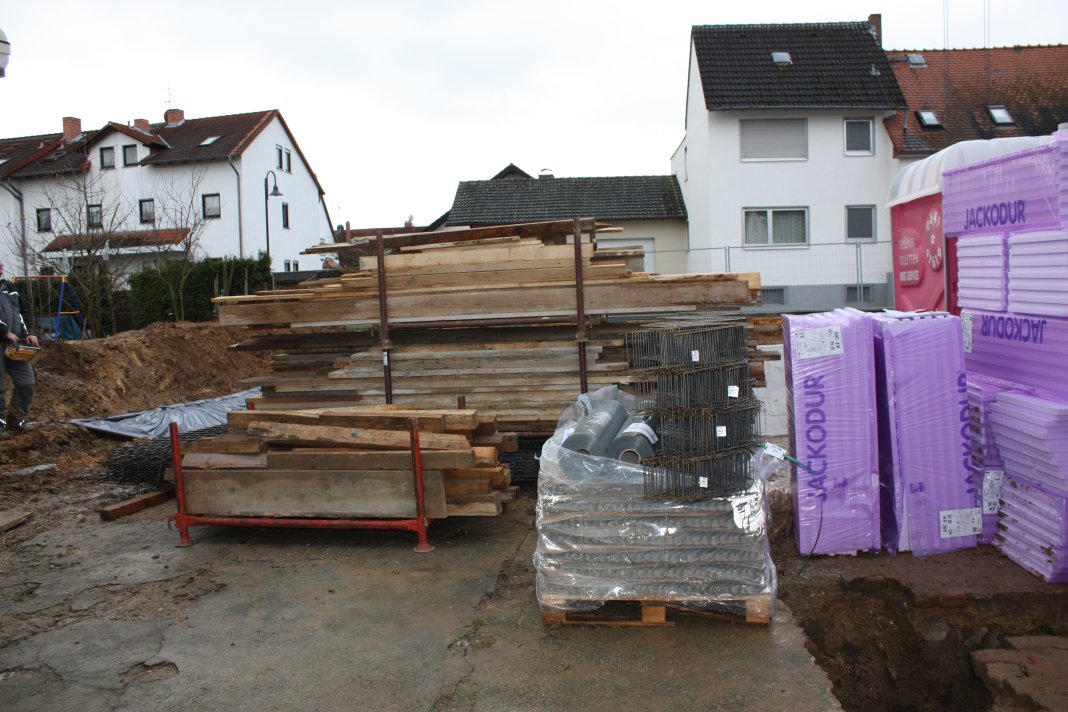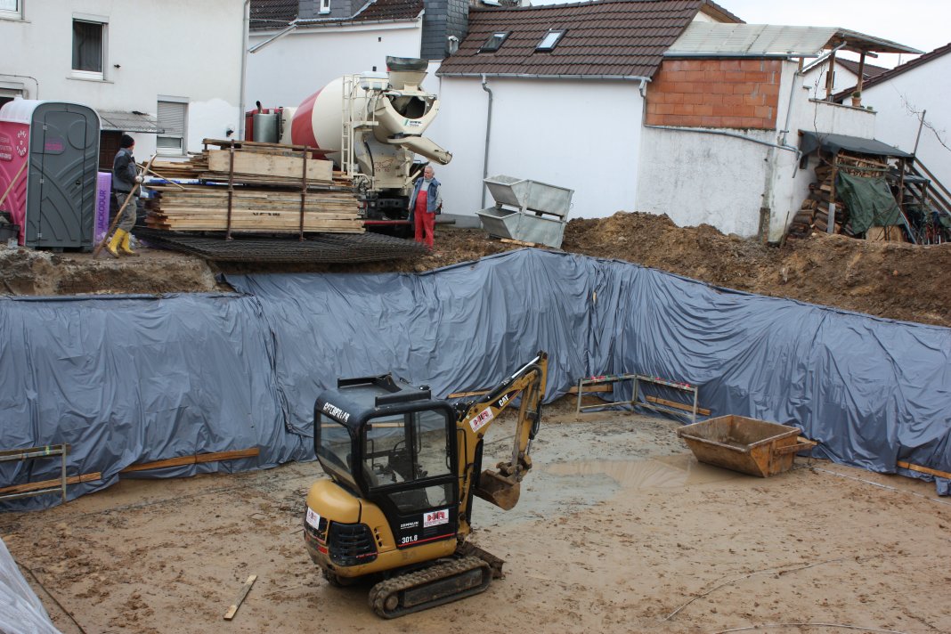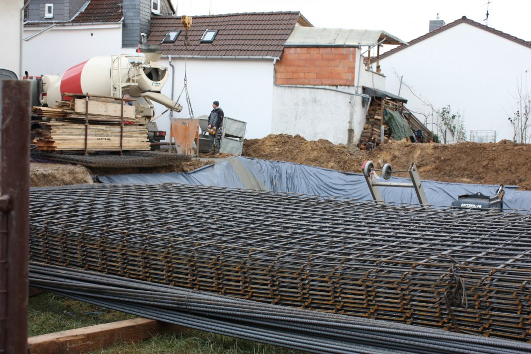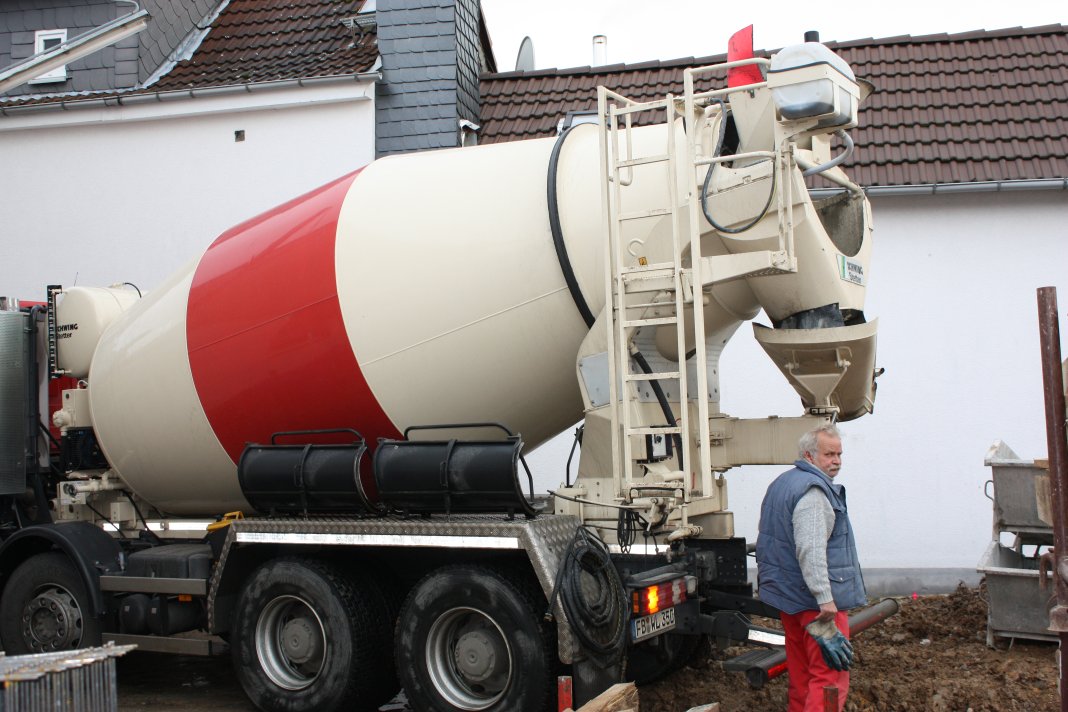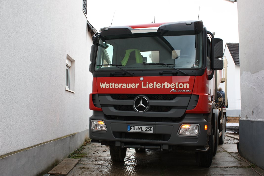 Sogleich war auch der Wetterauer Lieferbeton am Start, und die Sauberkeitsschicht wurde halbseitig aufgebracht.