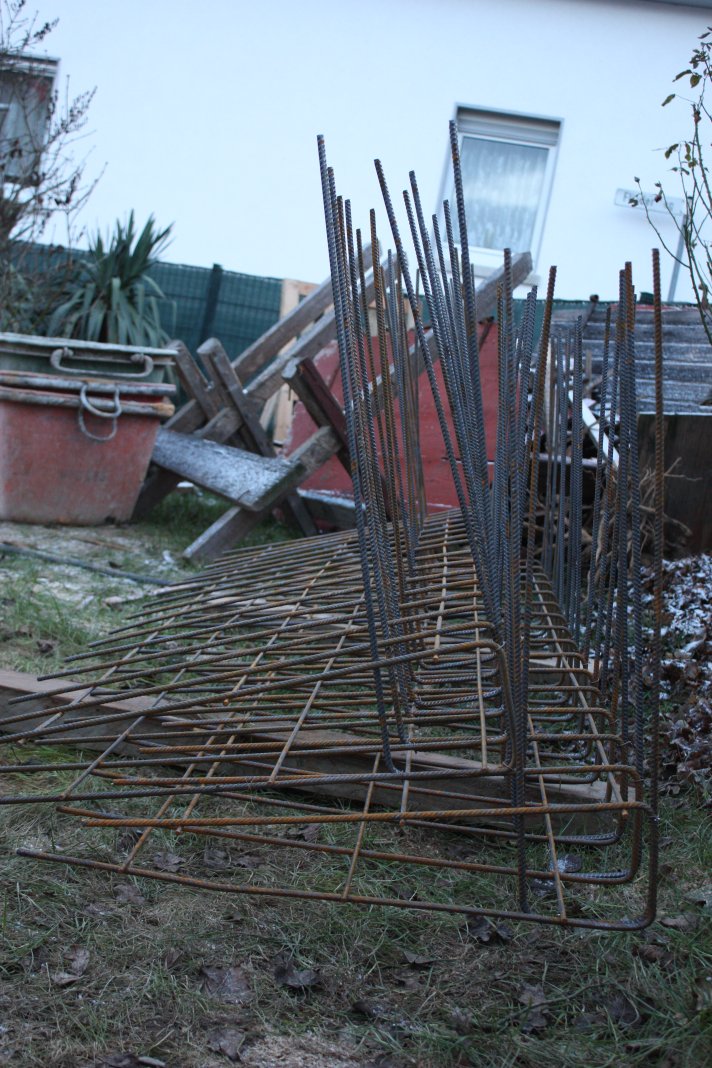 Das konnte man dann auch beobachten. Gegen Ende des Tages wurde dann neben der Grube die Armierung in Handarbeit hergestellt.