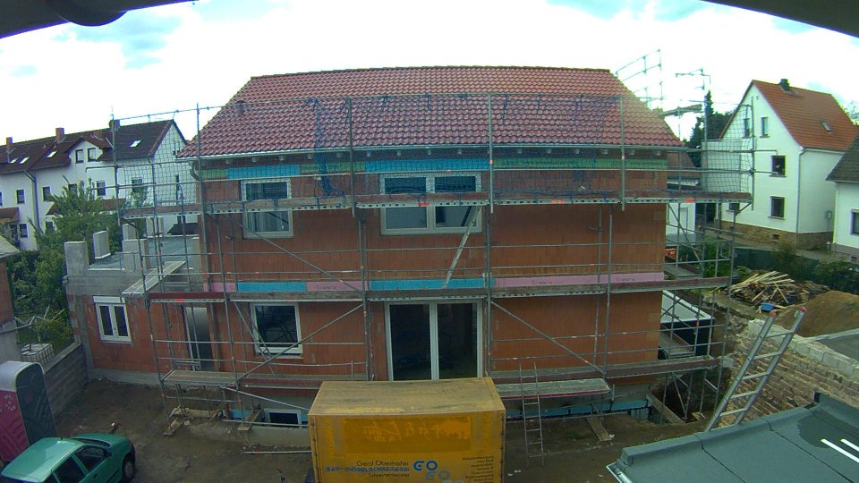 Leider haben wir erstmals vergessen, Bilder zu machen, so dass wir heute nur einige Bilder der Webcam haben. Man beachte die Folie an den Fenstern und das Verschwinden des Holzes im Garten!