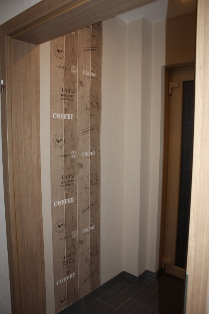 Sebb hat den Garderobenbereich im Flur tapeziert, der Rest kommt nächstes Jahr.
