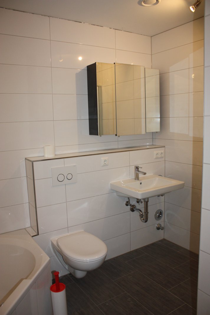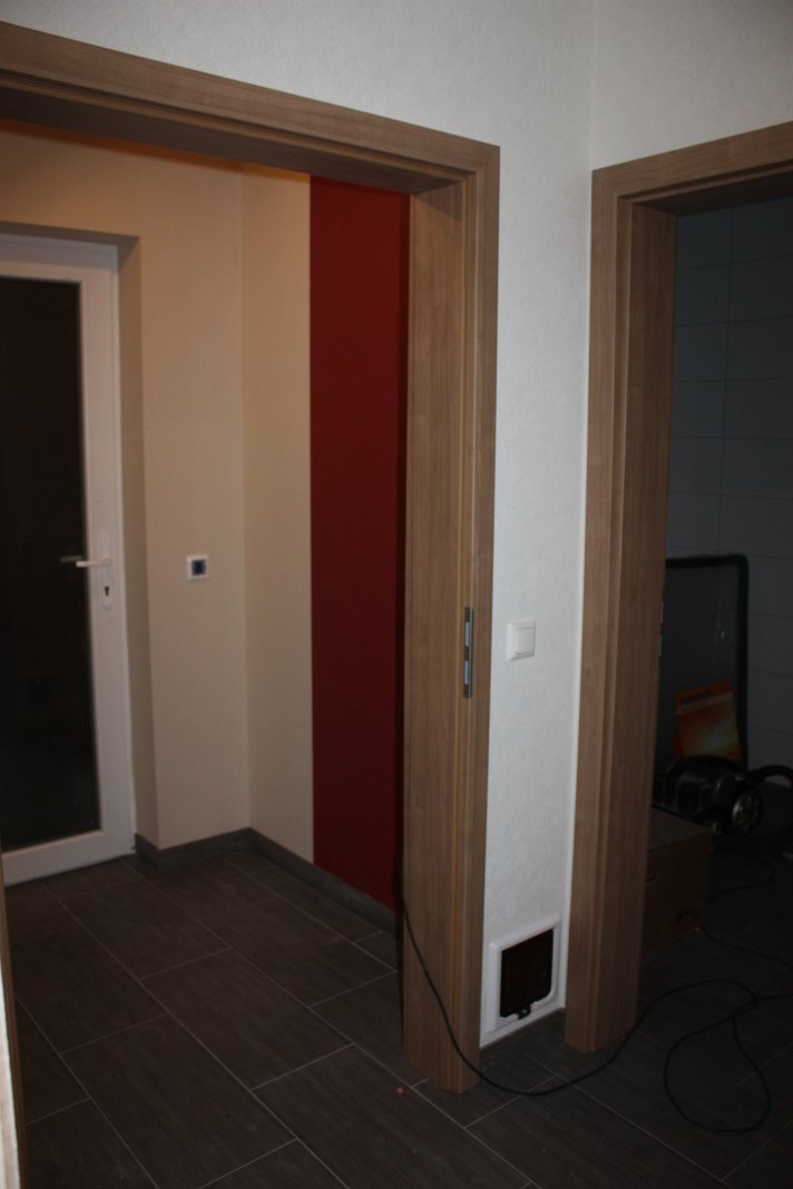 Nachdem ich heute den Durchgangsraum zur Garage tapeziert habe, wurden die Spiegelschränke montiert.