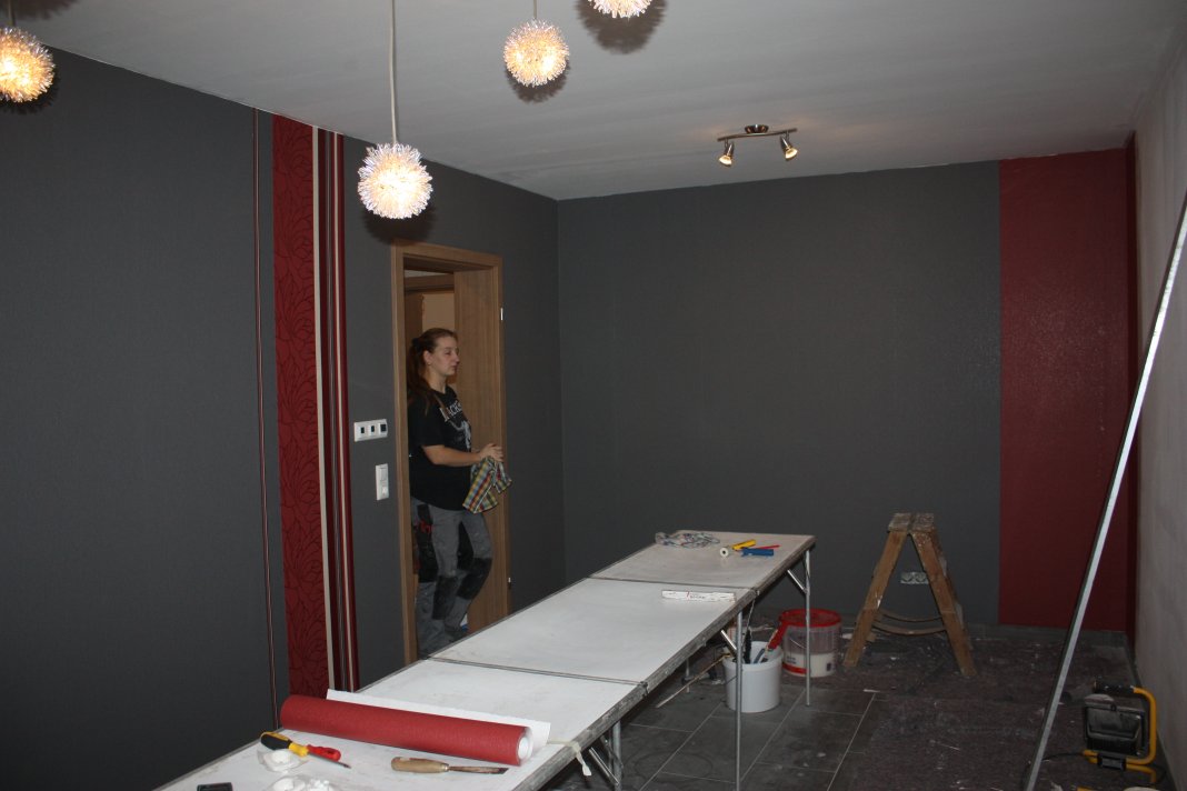 Ela und ich haben das Schlafzimmer tapeziert… gewagt, gewagt… ROT – SILBER