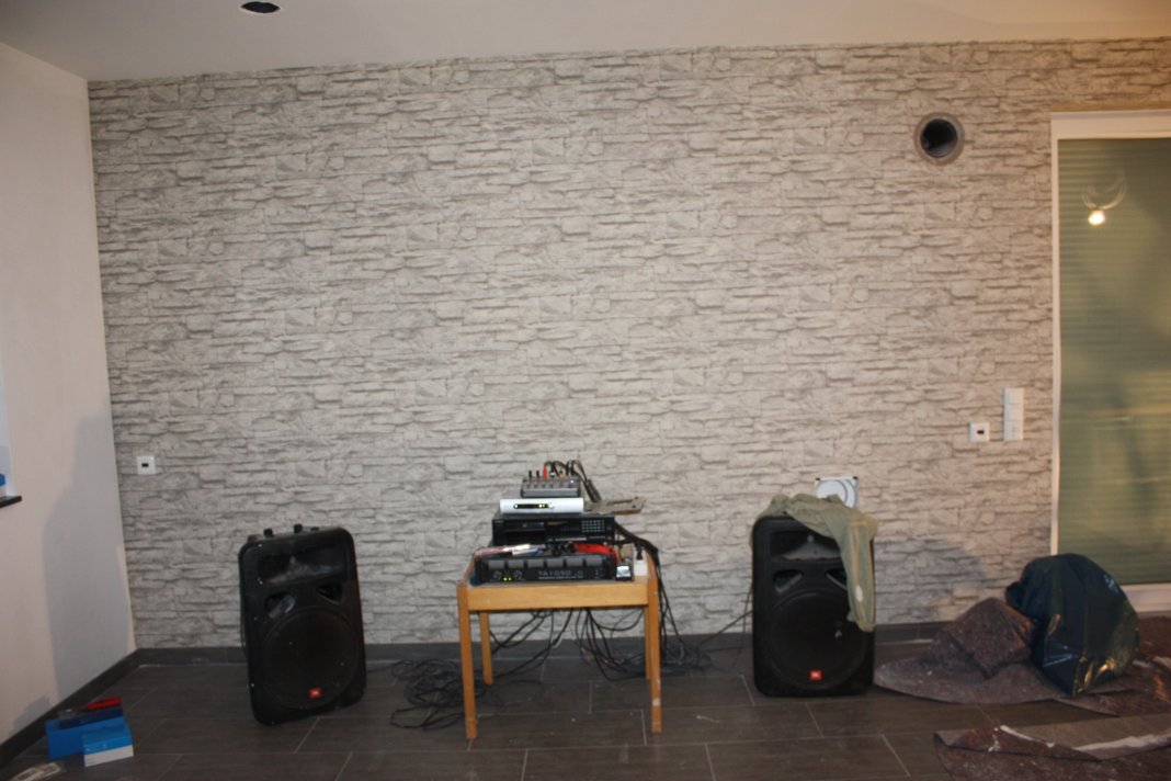 Nachdem die Rapport- Steintapete bis über das Fenster geschafft ist, habe ich gleich mal die Anlage ins Wohnzimmer geräumt … PARTY ON !!!