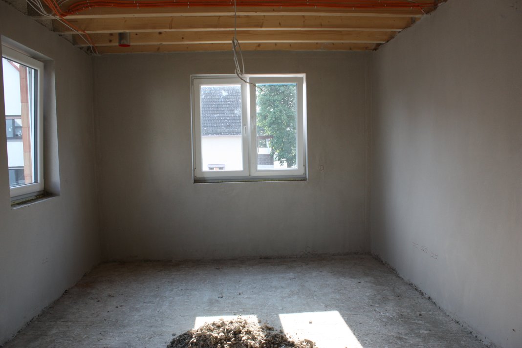 Dafür kann sich das Obergeschoss schon sehen lassen, wir haben geschlossene Wände, ein HAMMERANBLICK.