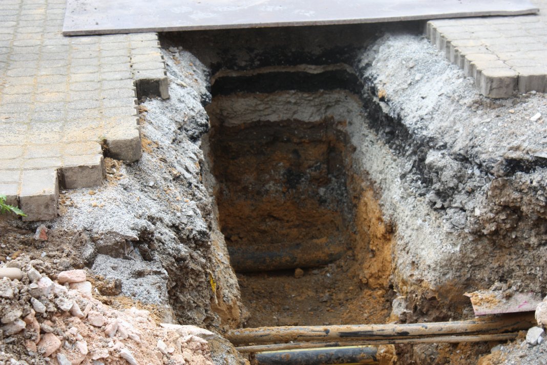 Unglücklicherweise ist der aber nicht dort, wo er eingezeichnet ist, sondern scheinbar 30 cm verschoben, so dass wir ggf. am Montag noch etwas mehr ausbaggern und die Mehrsparteneinführung verschieben müssen.